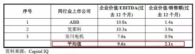 综合来看,从境外可比公司来看,ABB、发那科、安川电机的企业价值/EBITDA平均倍数较本次收购价格对应的倍数低,企业价值/销售额倍数平均值与本次收购价格对应的倍数相当。