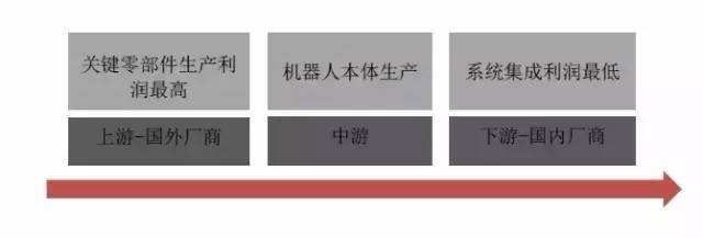 ●上游关键零部件包括控制器、伺服电机、减速机等,研发难度高,主要被发达国家所掌控,利润率高。