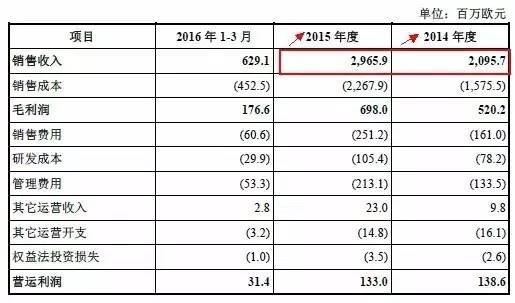2014年、2015年和2016年1-3月,公司实现的归母净利润分别为6810万欧元(约合5亿元)、8680万欧元(约合6.3亿元)和2110万欧元(约合1.5亿元)。