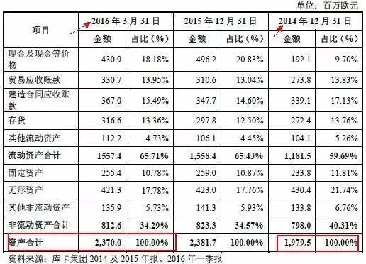 截至2016年3月,库卡集团总资产较2014年底增长19.73%,2015年销售收入和净利润较2014分别增长41.52%和26.73%。