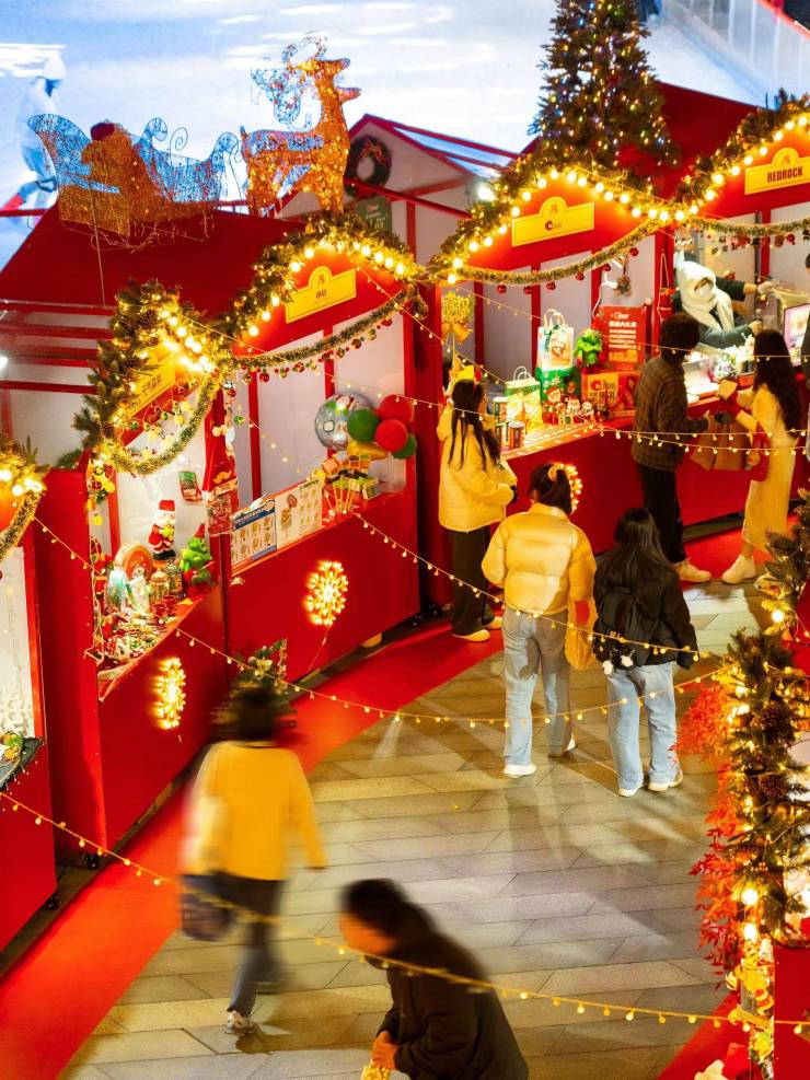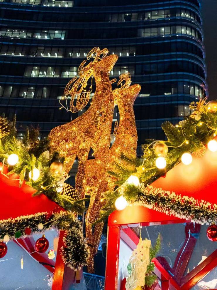 POP CHRISTMAS MARKET圣诞市集于12月13-15日、20-22日以及24-26日圆满举办。市集摊位设计别具一格,一反传统木屋设计,15座点缀星光的红色小屋营造出独特的美式圣诞氛围。背后的陆家嘴三件套更是点睛之笔,照片自带地标背景,成为上海最新人气打卡照的绝佳机位!圣诞老人爬上屋顶,麋鹿雪橇车布置精致,将圣诞气息烘托到极致,成为2024魔都必逛圣诞市集!