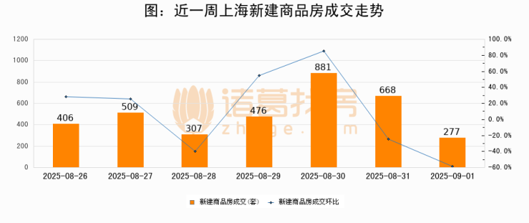 【上海成交日报】09月01日新房成交277套、二手房517套;涨价房源102套