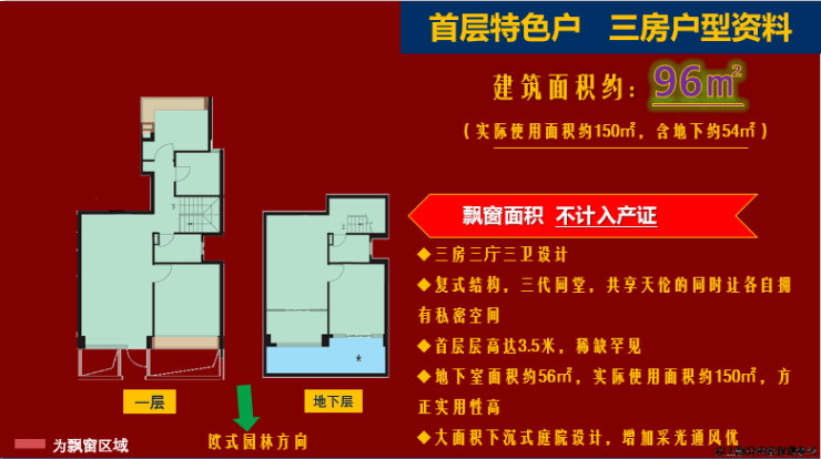 96m²2房+54m²地下室(赠送)