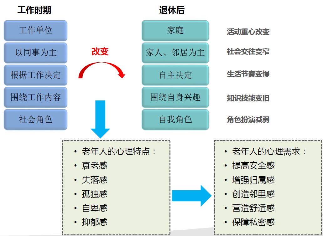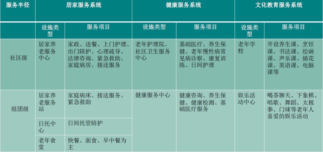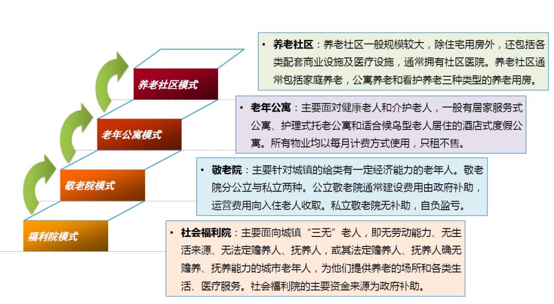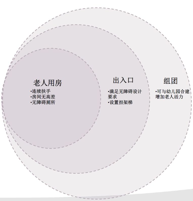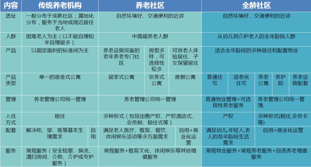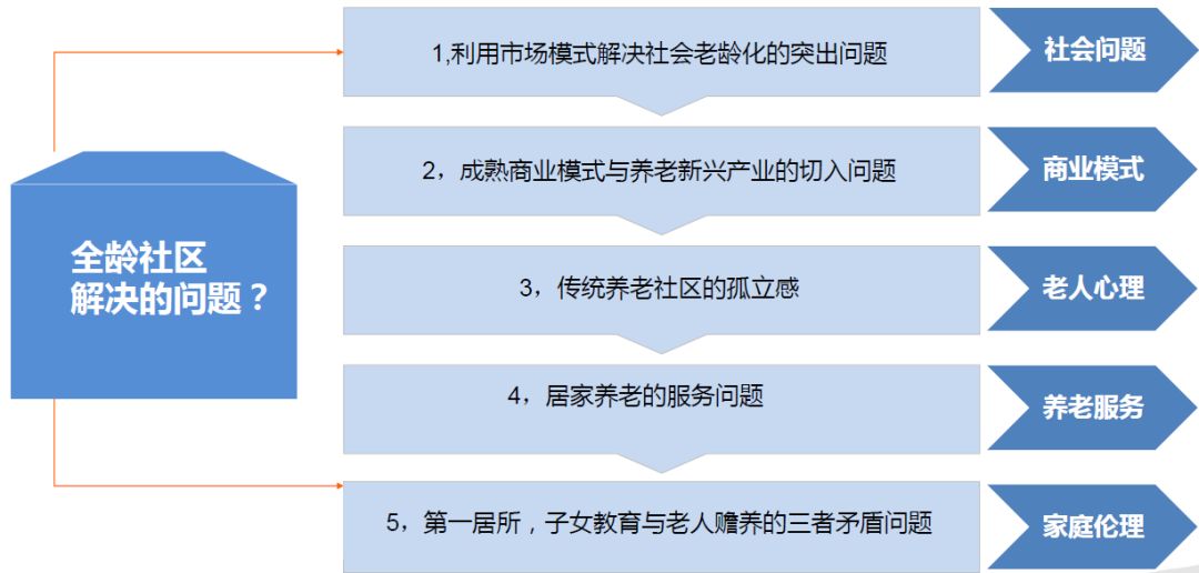 2.养老地产作为养老产业重要的硬件组成,伴随着养老模式经历了各个发展阶段,但最终都发展为以居家养老和社区养老为主要模式。针对国内养老地产的问题和现状,全龄社区模式的解决方案应运而生。