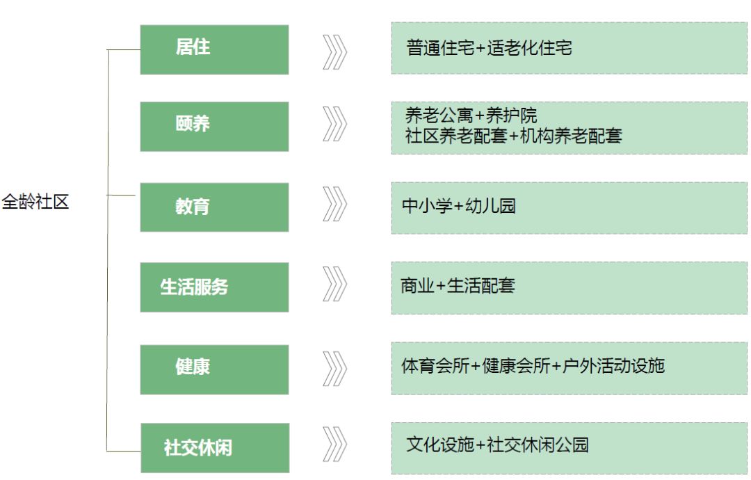 3.全龄社区以全生命周期为线,营建适宜全龄段客户群体混合居住的大型成长型活力社区,由于此模式与住区开发模式紧密结合,因此有更强的适应性与发展性地解决国内养老问题的可能.