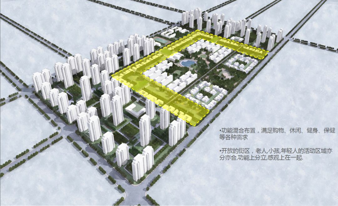 在老人极限步行半径内有效解决休闲购物、社交、健身等功能需求