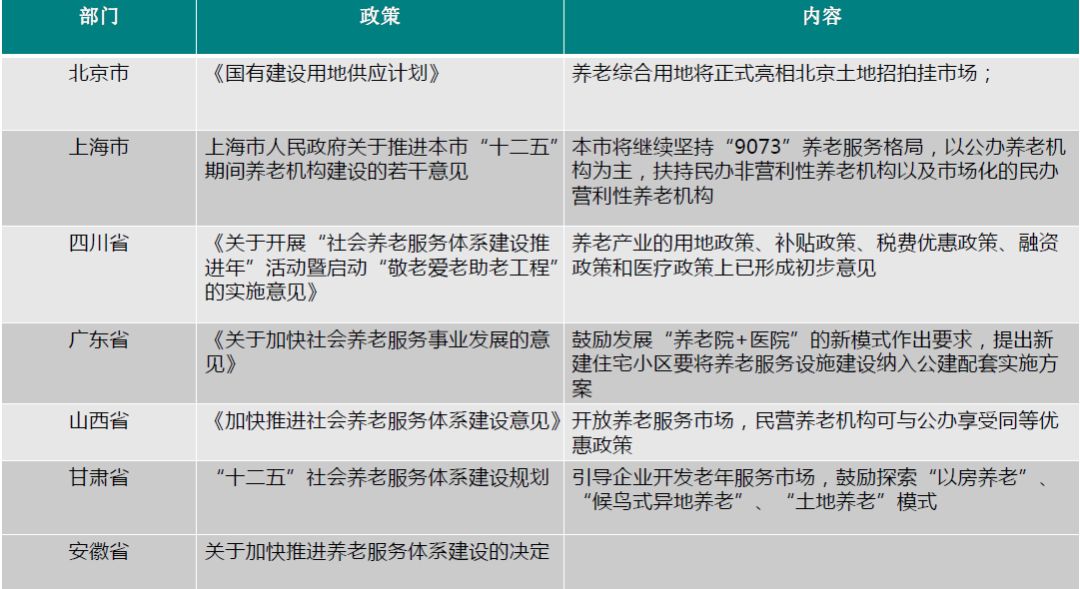 2.政府已开始高度重视养老问题,持续出台的政策将为养老地产提供少有的扶持