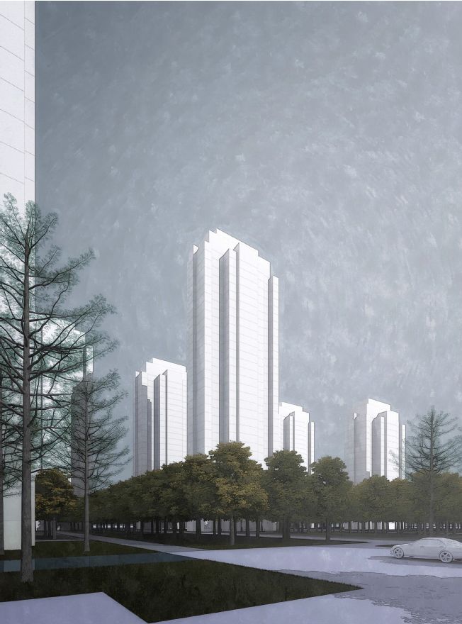 引入中学配套。设置中学一方面满足全年龄段生活需求,另一方面体育场馆同时也是活力轴的一部分。可以作为整个地块的体育中心向公众开放。