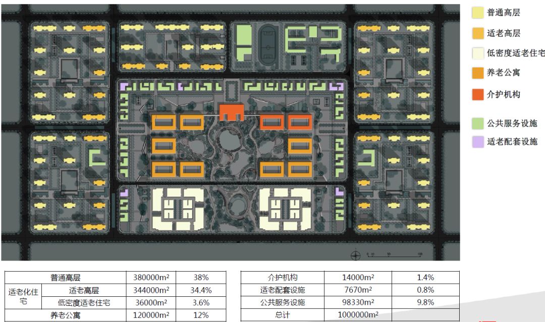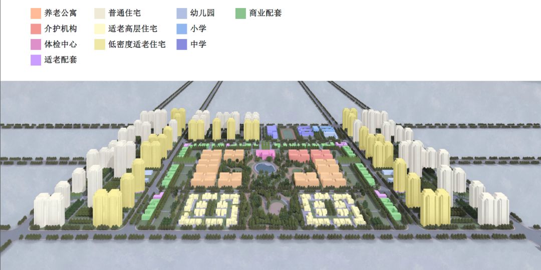 通过全龄社区典型案例的概念方案设计,研究全龄社区的人群需求,物业配比、养老设施配比等,建立全龄社区的理想规划和数据模型.
