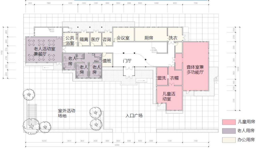 日间照料机构建筑首层平面图(与幼儿园合设)