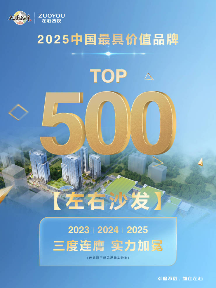 作为新时代大国品牌,左右沙发深耕家具行业39年,秉持以工匠精神缔造绿色优品的信念,始终坚持以专业为事业,致力于“打造绿色家居,幸福亿万家庭”,持续推动行业品质升级,为消费者提供高品质的居家体验。正是这份对品质坚持的初心,赢得社会各界的广泛认可。左右沙发深耕品质,载誉前行,近期连获殊荣:不仅连续三年入选“中国家具十大品牌”,三度连膺《中国500最具价值品牌》,还位列“2024中国轻工业二百强企业”,以显著优势入选“中国轻工业软体家具行业十强企业”,入选“2025年中国家具行业以旧换新重点推广企业”等。这些荣誉不仅是对左右沙发品质的认可,更是其践行“让更多人过上幸福生活”使命的有力见证。