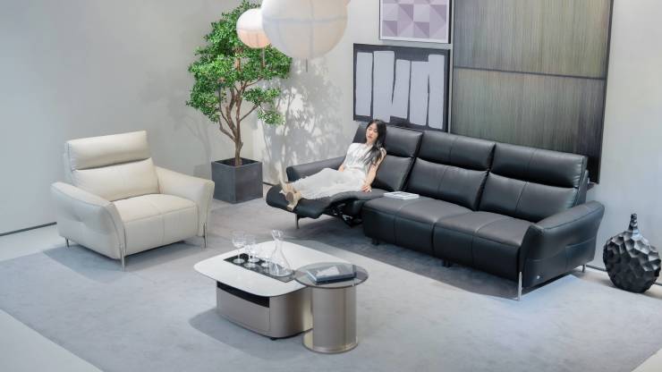 星际沙发采用全新“0”靠墙功能件,摆放“0”靠墙、“0”距离,满足扫地机器人自由进出,沙发搭载座位电动功能和头枕电动调节功能,坐躺自由切换。
