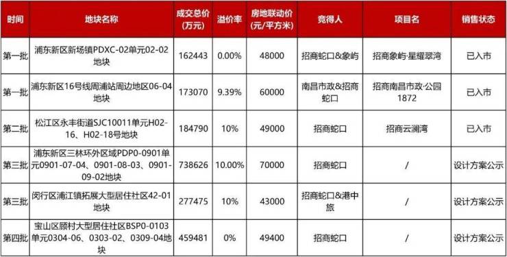 招商象屿·星耀翠湾、招商南昌市政·公园1872、招商云澜湾均已入市,浦东三林地块、闵行浦江镇地块、宝山顾村地块均已公示设计方案。