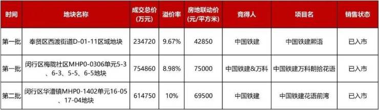 中国铁建的战果主要集中在第一、二批次,斩获的3幅地块总金额160.433亿元,中国铁建熙语、中国铁建万科朗拾花语、中国铁建花语前湾当下均已入市。