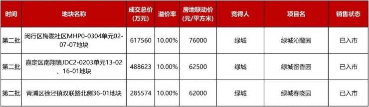 2023年的上海土拍史上,绿城堪称神一样的存在。第二批下半场土拍中,18家房企报名的徐泾地块,17家报名的南翔地块,15家房企报名的梅陇地块,三个地块通过摇号全部花落绿城,总金额139.1757亿元。绿城三子:绿城沁蘭园、绿城留香园、绿城春晓园均已入市,但触发积分的仅有闵行梅陇的绿城沁蘭园。