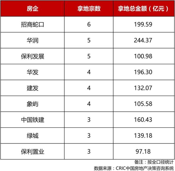 拿地房企央国企占据主力地位的特征延续,民营房企鲜少现身土拍战场。在目前的市场环境下,房企拿地更为谨慎,交通便利、配套全,还有“倒挂”空间的地块更受追捧。此外,从一次书面报价、触发随机值再到“摇乒乓球”,“运气”也影响着能否拿地,不乏多次报名、但屡战屡败的房企。