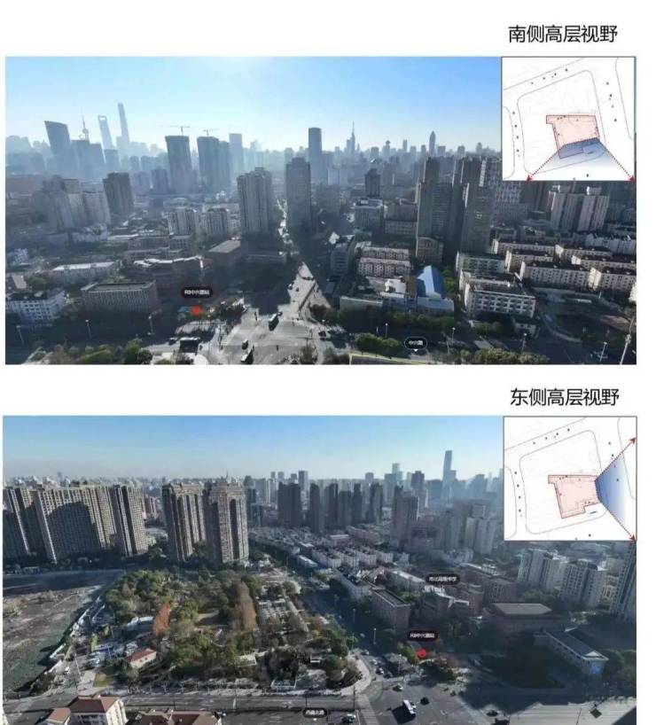 参考航拍,项目的南面能看到陆家嘴三件套,东面则能一览无余中兴公园绿境。