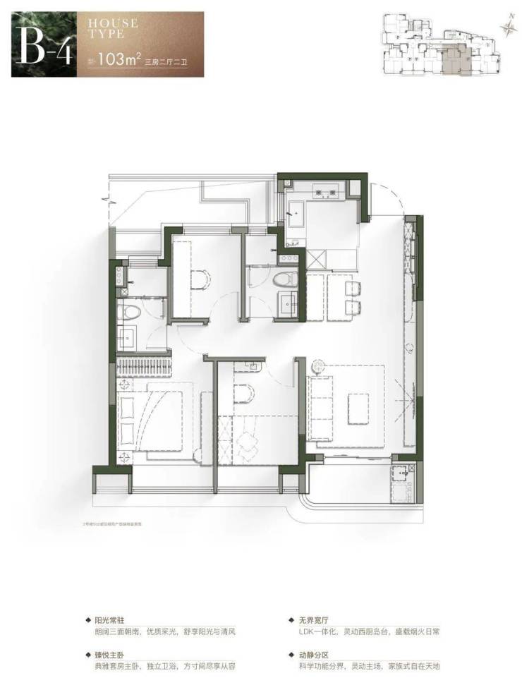 ③三开间朝南,保证充足光照。
