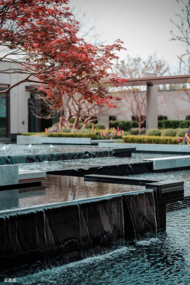 这其中,水景的打造非常独到。经过风雨连廊,会看到映江润府打造的650㎡纯净自然的水域界面,楼台与水瀑交融,整个无界水院采用了水系堆叠,层层变换,错落有致。而且,水景旁还别具匠心的栽植名贵树木,乌桕、红枫、红果冬青……从不同的角度望过去,都是新的风景。