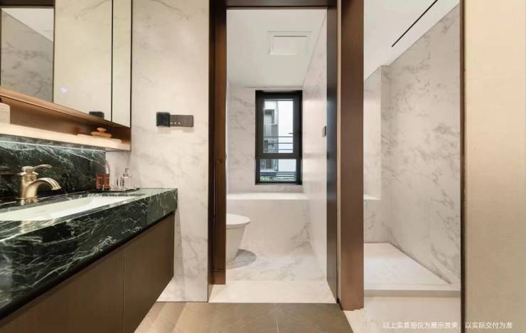 当岩板成为豪宅交付的标配,如何实现再一次的升级?映江润府的答案,是融入场景,专属定制。卫生间定制通顶岩板,纹样大气,品位非凡,未来不被各种勾缝的清洁而烦恼。厨房墙面定制无缝光面岩板,拒绝清理死角,陪你做出大餐,更减少你饱餐后打理的时间。