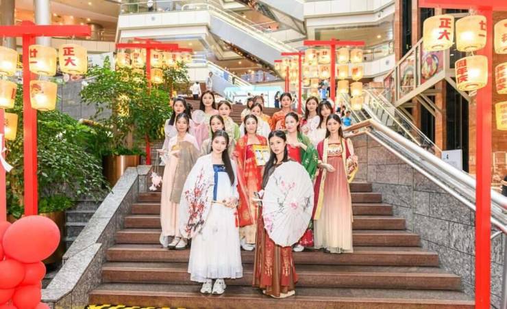 花灯亮起,美食飘香。古风感满满的花草纸灯在罗马台阶点亮延伸,让往来消费者徜徉在中秋氛围里。今年中秋,正大广场将传统内容和现代场景做了深度融合,场内4F罗马台阶和黄金大道被古色古风古香古味填满,有趣的猜灯谜赢兔子灯活动,邀请消费者体味传统灯会的韵味。现场,不仅有汉服巡游展现古今交汇的汉服文化大秀,让往来消费者与国潮的浪漫美学不期而遇;还有最IN的市集—“上’潮’了”市集,甄选特色民俗好物、小食,让整个空间更加好逛。游走其中,时不时就能看到小姐姐们身着汉服,在手工摊位前驻足挑选,也有国潮穿搭的年轻人在这里打卡拍照,宛如一场流动的游园盛宴。