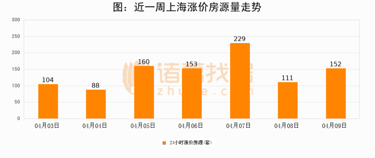 根据诸葛找房数据显示,上海24小时涨价房源量为152套,较04月08日增加41套,环比上涨36.9%。与此同时,涨价房源占比小幅扩大,业主信心有所提升。