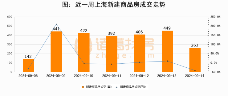 【上海成交日报】09月14日新房成交263套、二手房570套;涨价房源77套