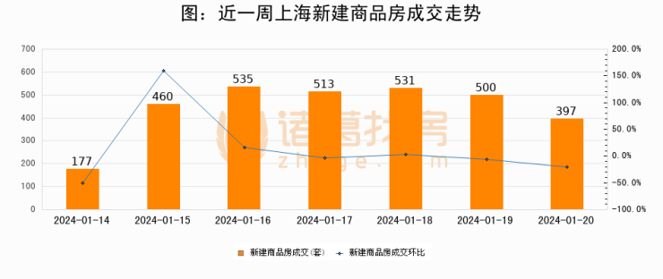 【上海成交日报】01月20日新房成交397套;涨价房源193套
