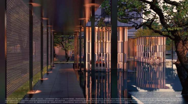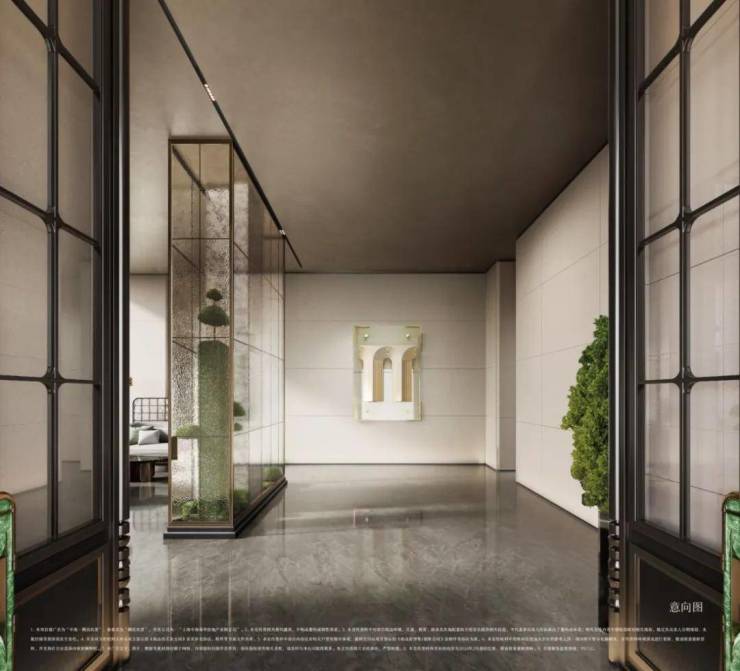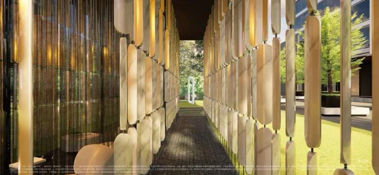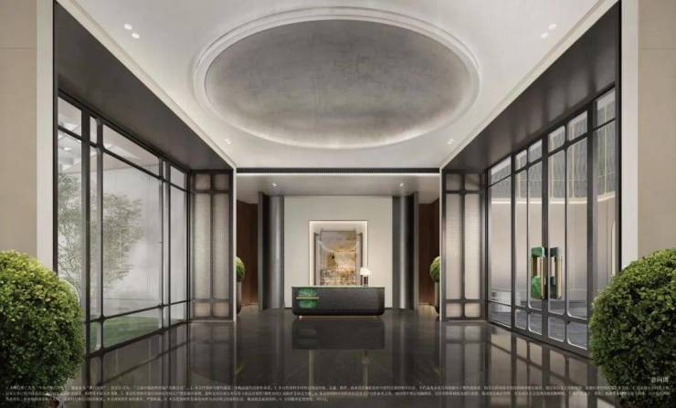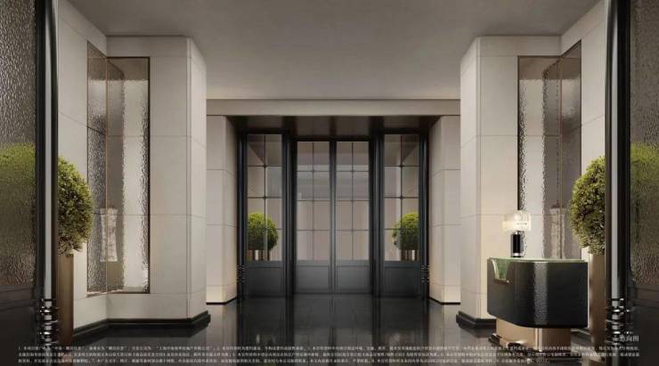 中海·顺昌玖里的入口退到布满梧桐浓荫的街道后边,中间用一方前庭再隔开,外墙是石库门传统的红色砖墙,顶部金属格栅则是对江南民居元素的传承,多座拱形落地长窗沿石库门拱形造型入口分别排开。