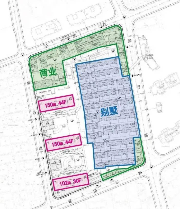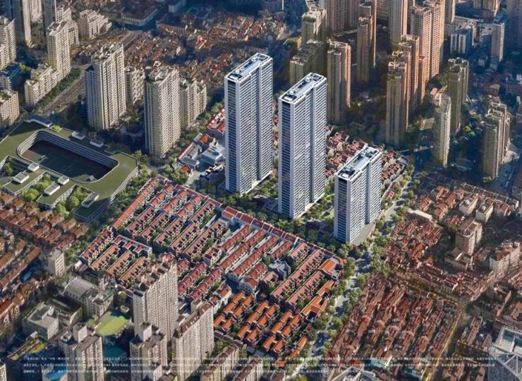 中海·顺昌玖里(原卢湾70街坊)的设计方案在2022年年初已公示,由102-150米三栋地标住宅+成片别墅以及商业部分组成。