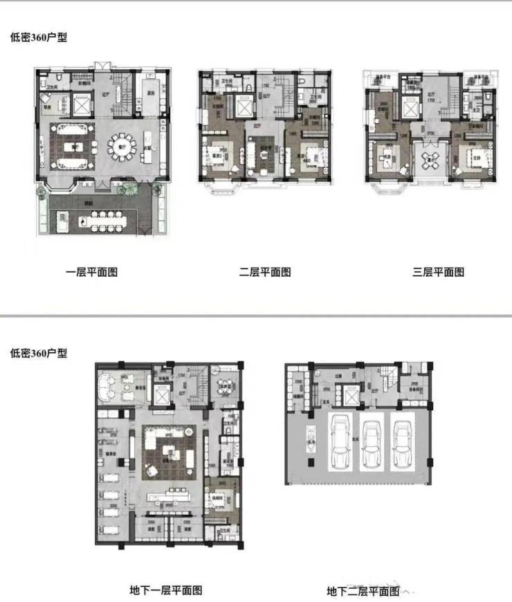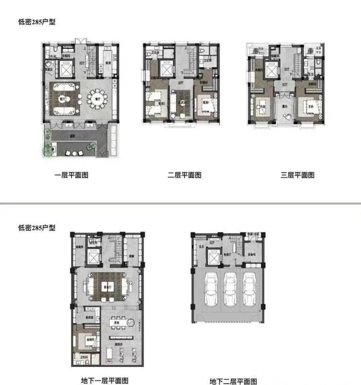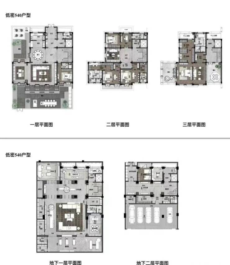 低密住宅沿肇周路布置,高10米,共3层,主要户型有340平、270平、495平等。