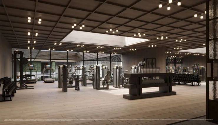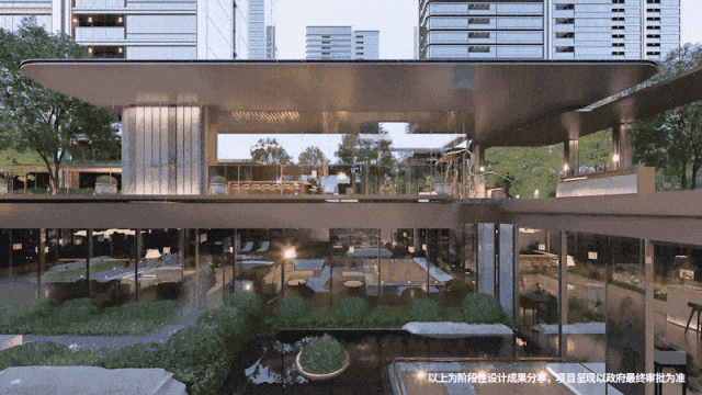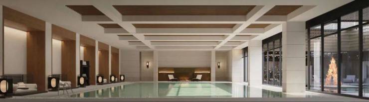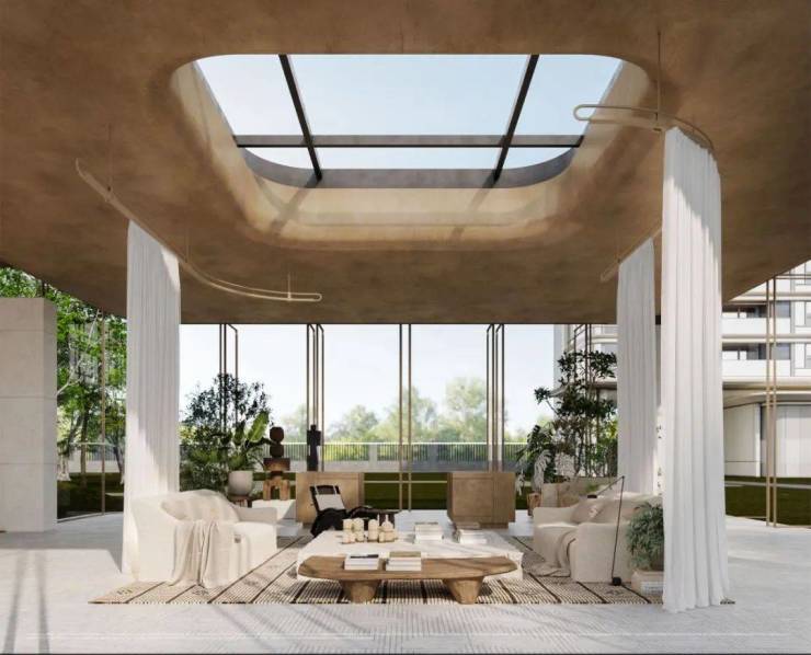 穿过景奢门庭,是一个非常摩登的下沉式会所,泳池、健身房、私宴区、会客区等空间场景,围绕立体园林做了围合式布局,搭配超大落地透光玻璃,整个空间就像一个通透的玻璃盒子,与自然无界融合。