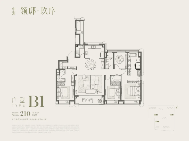 再来看这个建面约210㎡的4房户型