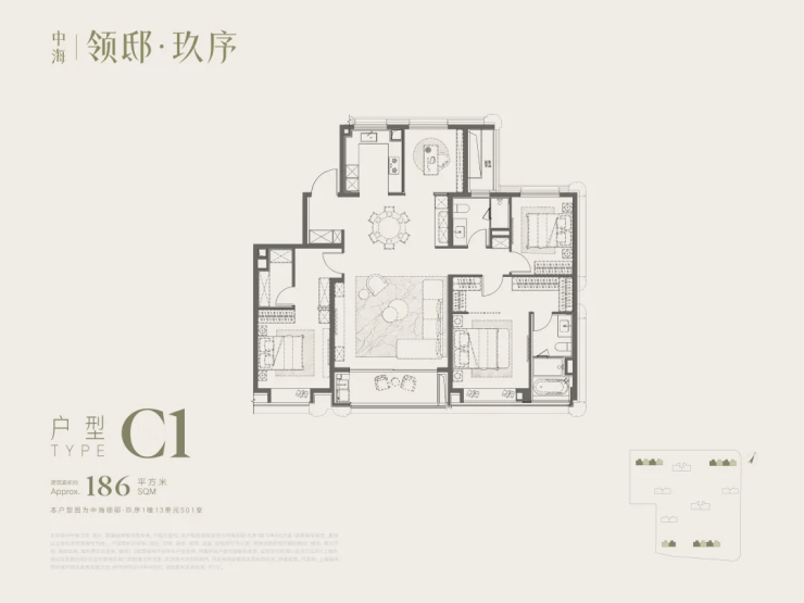 先来看这个建面约186㎡的4房户型: