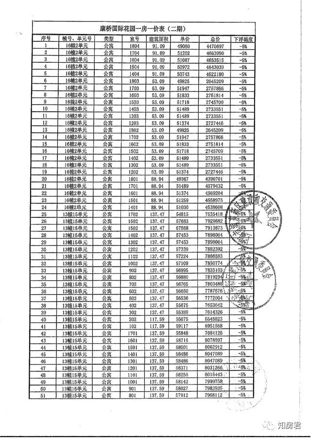 附一房一价表