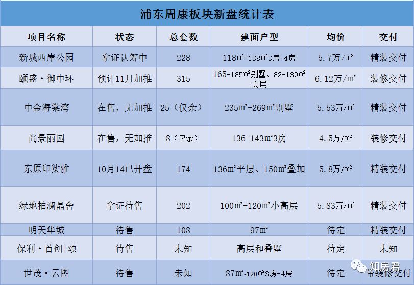 目前周康板块共有9个新盘,具体信息如下表: