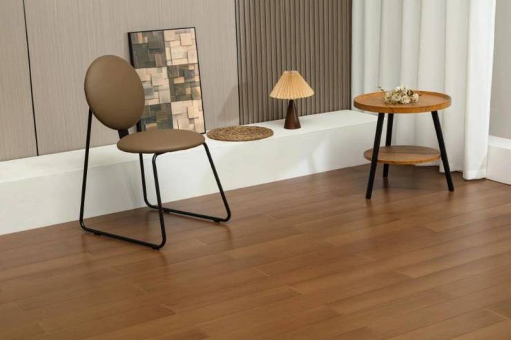 极简风讲究“留白有度”,追求空间的纯粹与秩序感。这款超级健康的浅胡桃色的地板是番龙眼材种,简洁的直线纹理,无杂纹、无结疤,清爽干净,恰好成为极简空间中“不多不少刚刚好”的温润基底,不仅视觉效果轻盈,还能提升整体格调。