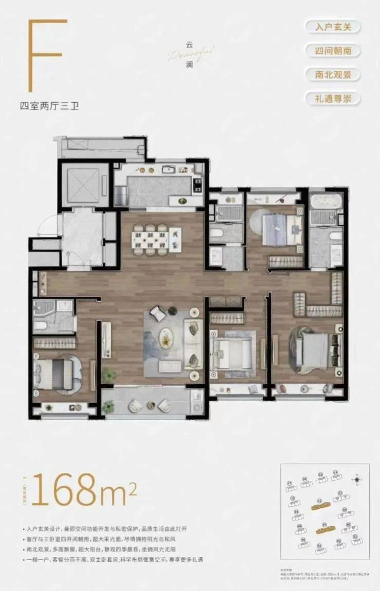 项目主力户型有:建面约89㎡3房、约98㎡3房、约140㎡3房、约168㎡4房。