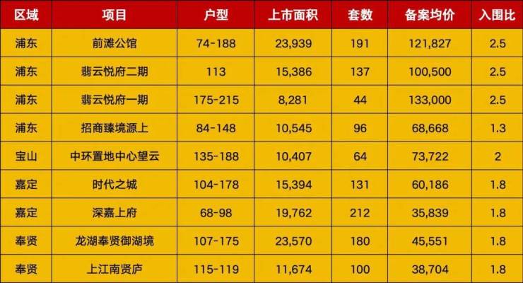 具体来看,浦东三林的前滩公馆、新杨思的翡雲悦府一二期同时入市,这几个都是浦东日光红盘,不过本批次价格均出现下调。浦东招商臻境源上、宝山南大中环置地中心望雲、嘉定南翔时代之城、安亭深嘉上府均有加推。奉贤新城龙湖御湖境、上江南贤庐两个纯新盘都是首开入市,将正面迎战。
