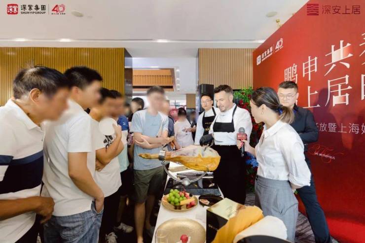 优雅的小提琴乐曲结束后,在所有嘉宾的共同见证下,特邀厨师现场切开为活动特别精选的伊比利亚黑蹄火腿,醇美脂香瞬间迸发四溢。正如深业·深安上居项目,从鹏城到申城,品质基因与时间的涤荡,让它自有一番风味!层层匠心雕琢,才能展现更适合城市向上生活的作品。