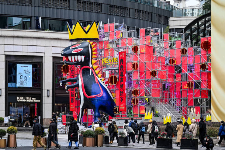 北广场上,兴业太古汇与让-米歇尔·巴斯奎特基金会联袂呈现的《戴皇冠的小恐龙》公共艺术装置跃然登场,自由无畏的“小恐龙”突破高达15米的非传统脚手架,以“轰轰龙龙”的姿态生动展现国际先锋艺术的独特魅力,引发消费者打卡热潮。如今新春临至,“小恐龙”的背景焕新变装,东方特色的灯笼与春联点缀其左右,带来中国年味与世界艺术的巧妙碰撞,尽显潮奢活力新年。