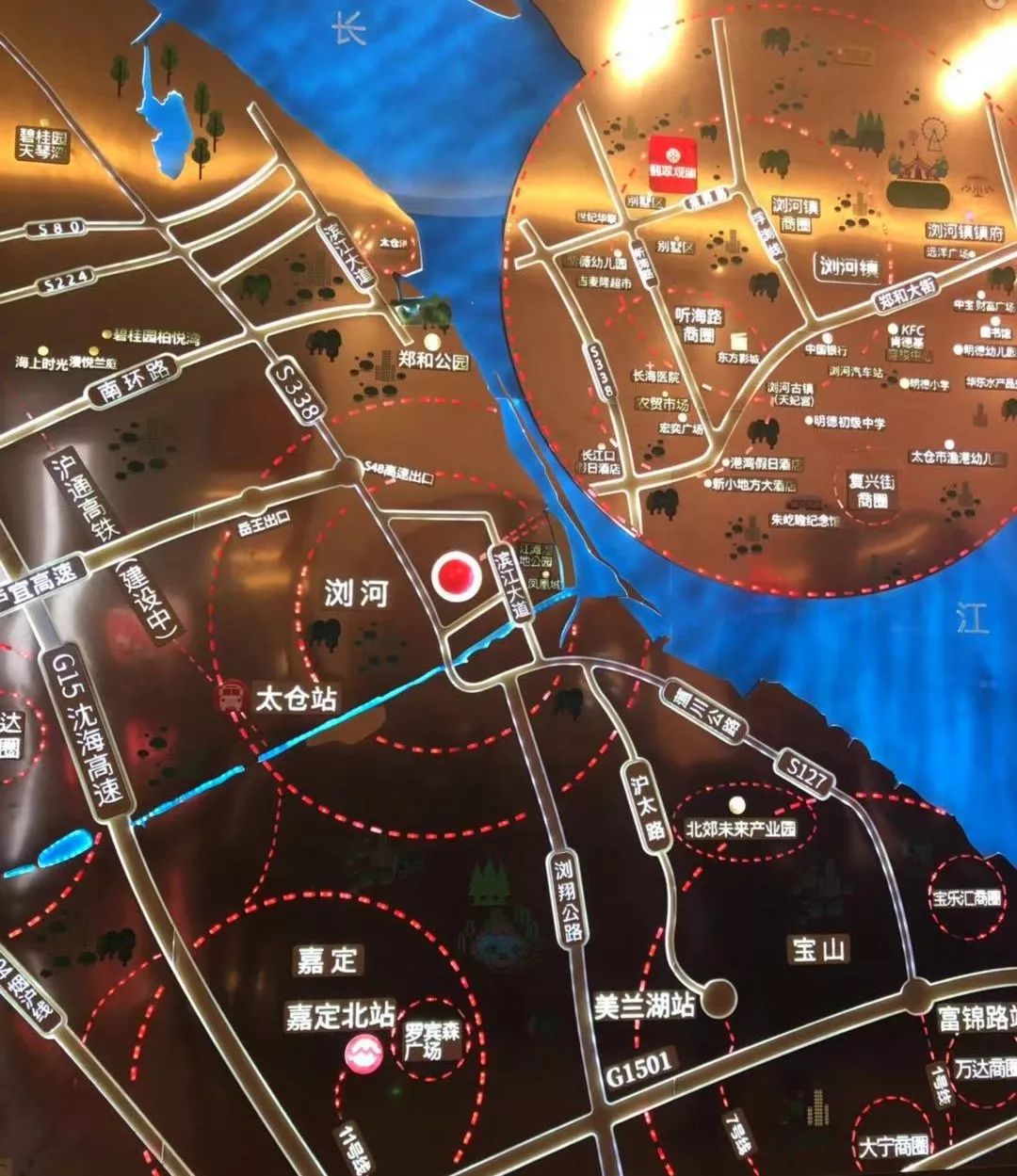 浏河虽然隶属太仓,但它与上海宝山、嘉定仅一河之隔,到上海7号线美兰湖、11号线嘉定北和1号线富锦路站,分别为17、20、23公里,30分钟车程皆可到达。因此,上海北区宝山、嘉定、普陀、静安4区600万常住人口,通过地铁接驳公交,1小时内即可到达浏河。