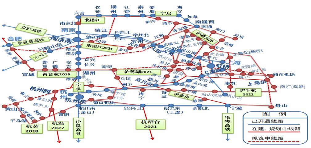 ↑沪宁杭地区2030年高铁网络规划图
