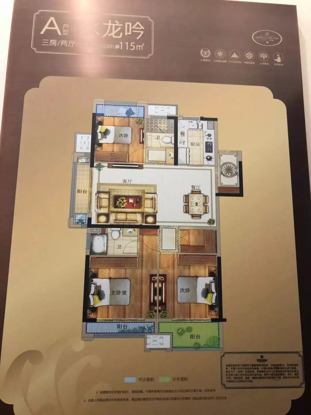 ↑翡翠观澜三房二厅二卫115㎡户型图