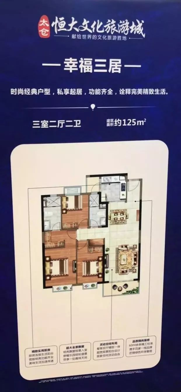 ↑太仓恒大文化旅游城三房二厅二卫125㎡户型图