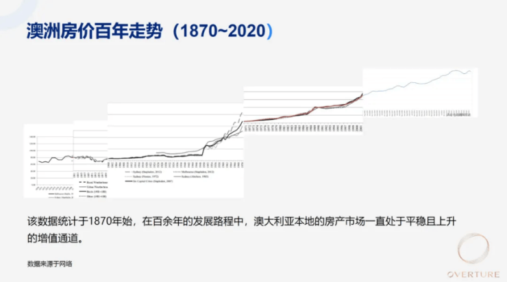 从1870年开始,澳洲的房产虽然偶有起伏,但是依旧拉出一条“跨度百年”的财富曲线。