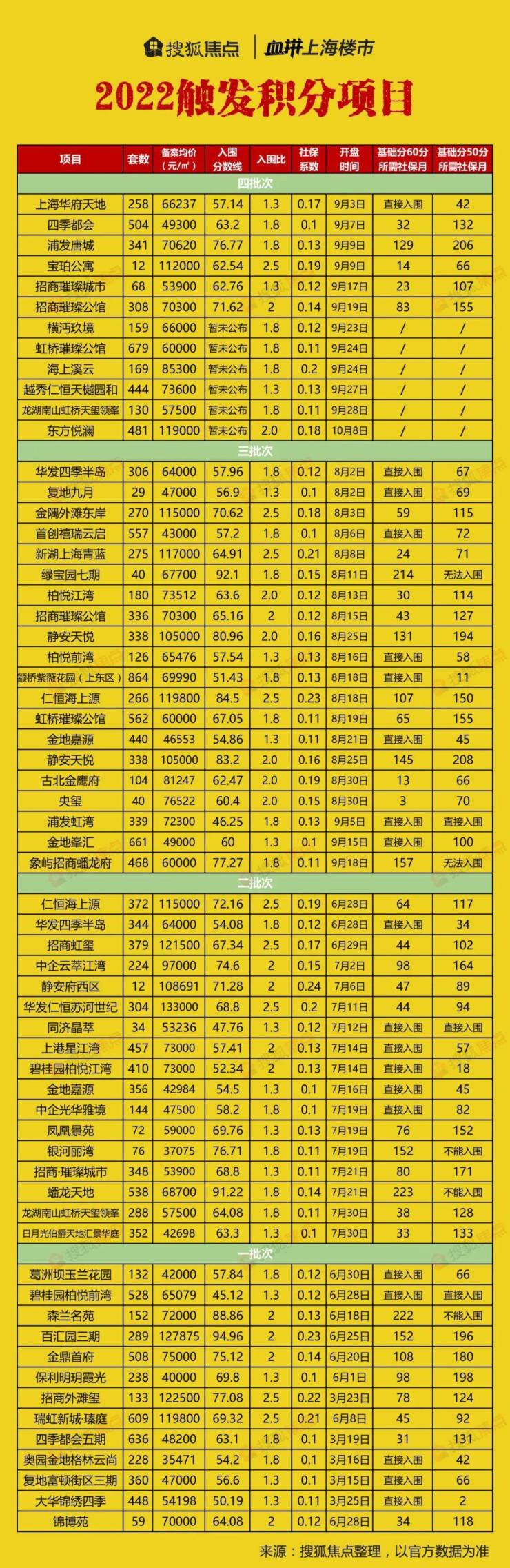四批次近日结束认购的项目中,又有四个项目确认触发积分:龙湖南山虹桥天玺领峯、东方悦澜、越秀仁恒天樾园和、虹桥璀璨公馆,当前四批次已累计12盘触发积分。