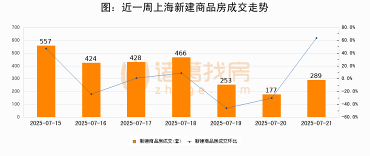 【上海成交日报】07月21日新房成交289套、二手房558套;涨价房源93套