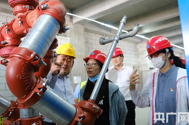 在精彩的党课之后,双方还共同参观了2021年上海市建设工程安全生产月综合创优观摩生命科学与创新创业大楼项目。双方就粘滞阻尼墙、多种材质幕墙等技术展开了交流与讨论。