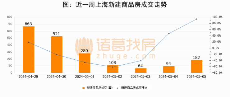 【上海成交日报】05月05日新房成交182套;涨价房源169套